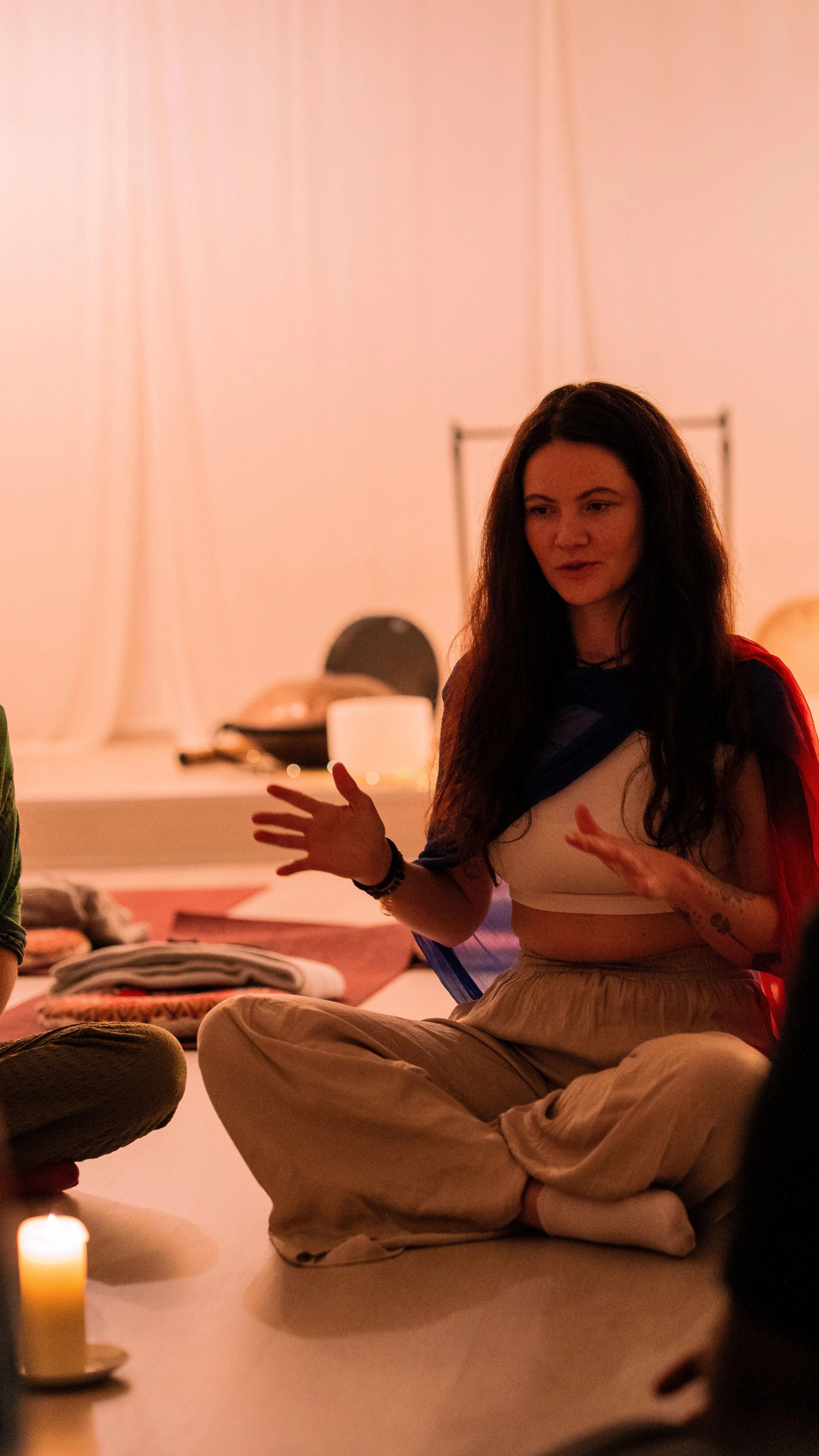 Myska empezó su camino con sonido en verano 2023, cuando experimenté el poder de un cuenco Tibetano, cuál su padre trajó de Nepal. Al sentir sus efectos inmediatos empezó a buscar más información hasta que decidió a unirse a una formación de Integral Sound Healing facilitado por una de las más reconocidas academias internacionales - The Sound Healing Academy. Con su maestra Becky Cresswel al final entró a otras formaciones - Integral Sound Heling for Groups, y después formación de facilitación de los círculos de tambores chamánicos.
